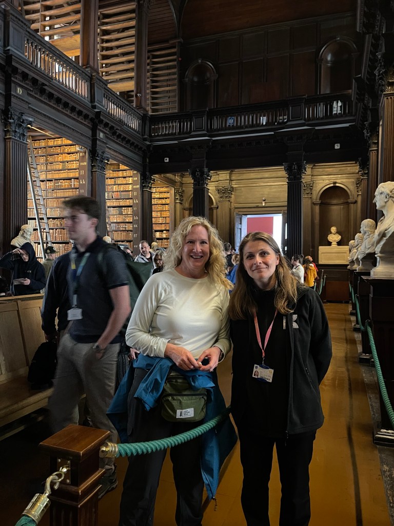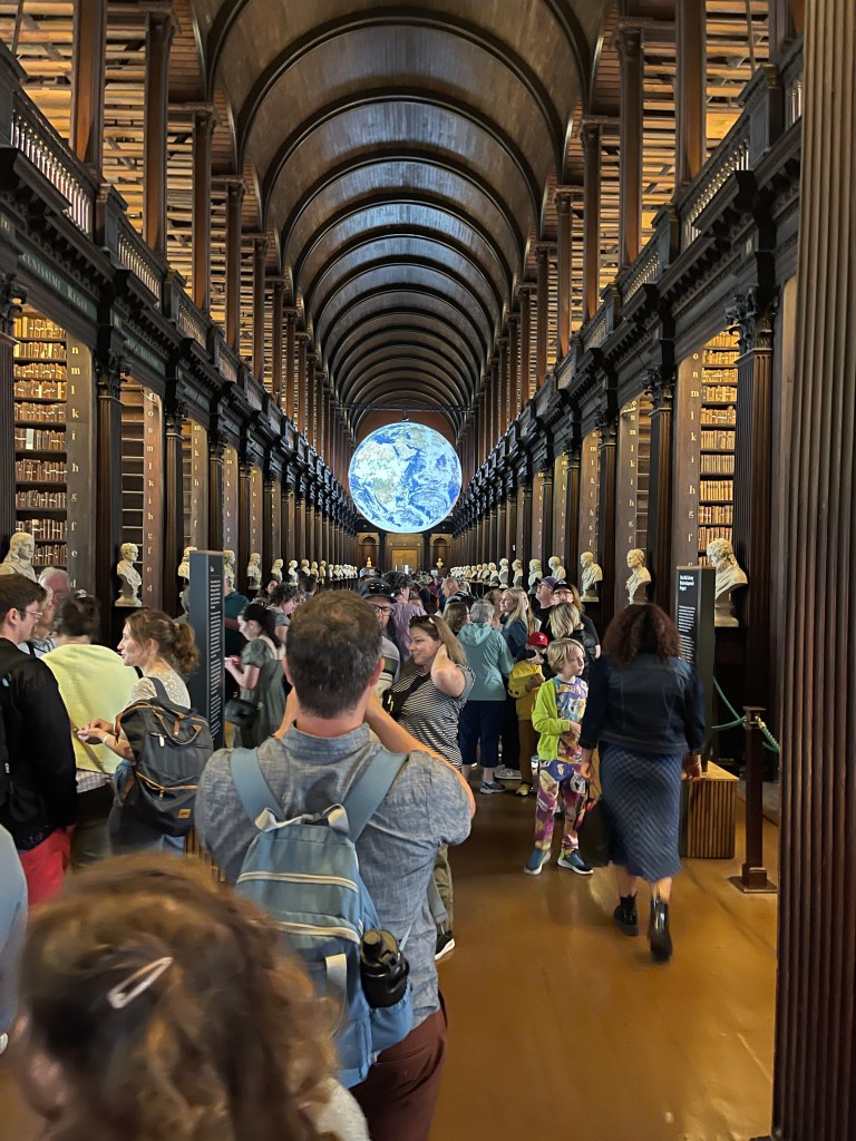 The Book of Kells is an illuminated manuscript featuring the four gospels of the New Testament. It was created in a Columban monastery in either Ireland or Scotland around 800 AD. I spoke with a couple of volunteers who worked or attended the college. The library is being renovated, so will be closed after this year.